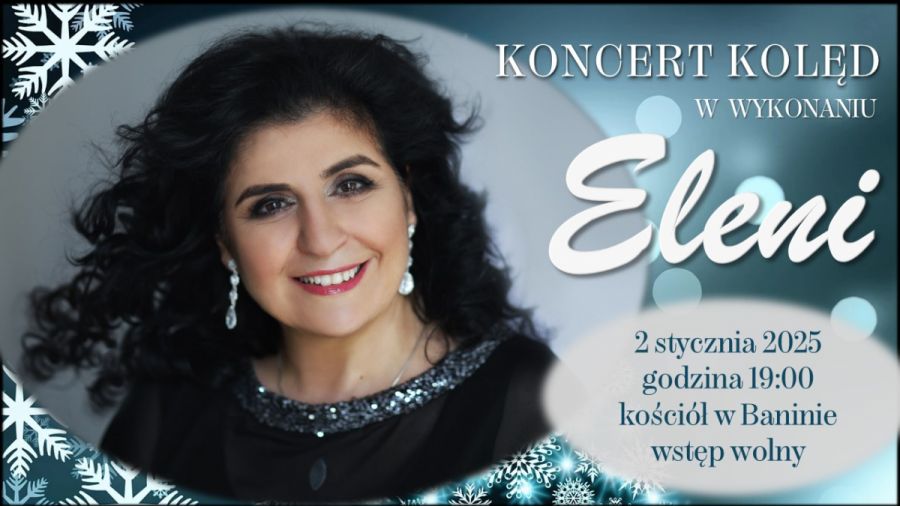 Koncert kolędowy w wykonaniu piosenkarki Eleni odbędzie się w naszym kościele w czwartek, 2 stycznia, 2025 r. o godz. 19.00. Serdecznie zapraszamy.